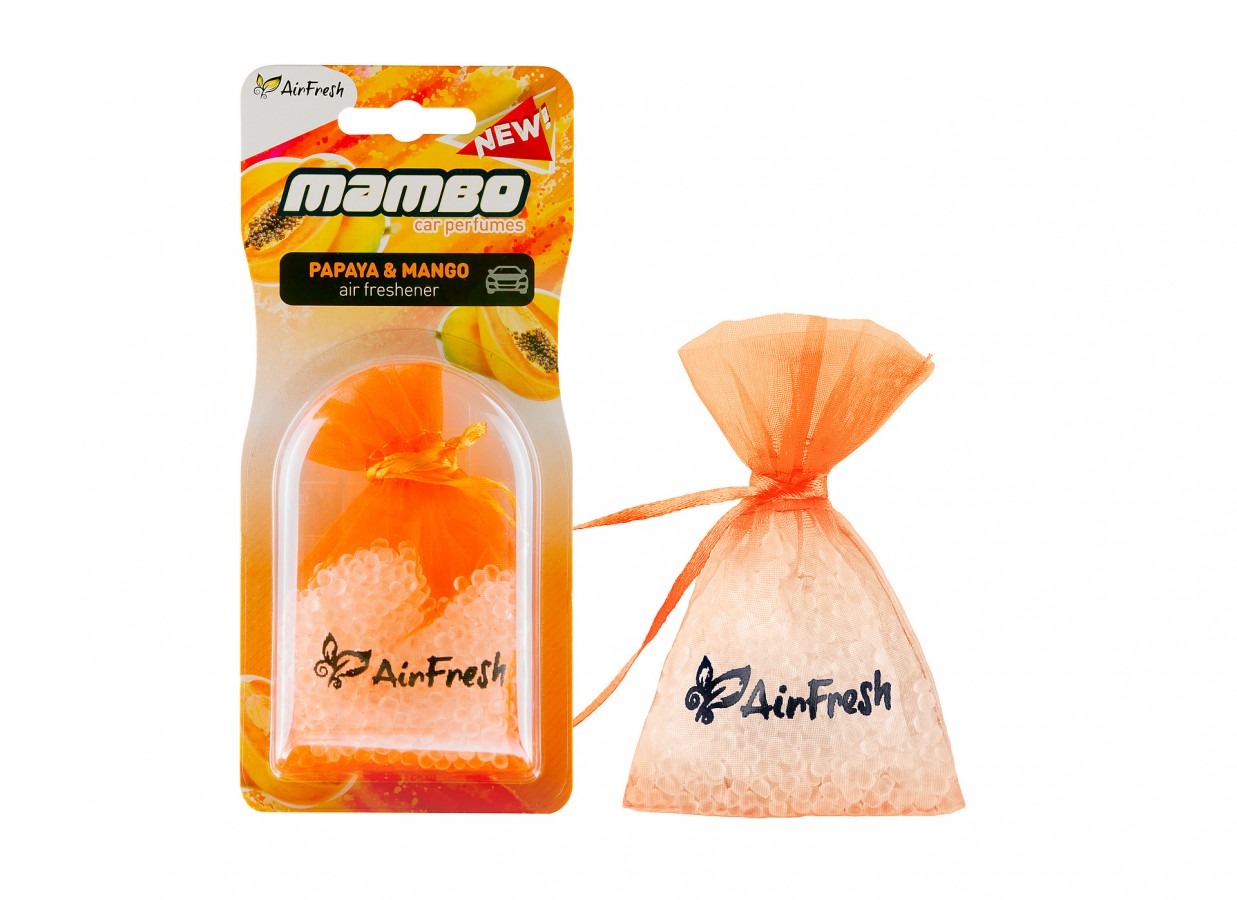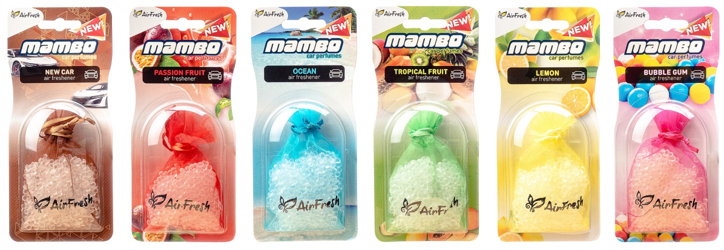 Die MAMBO-Kollektion besteht aus Düften in einem zarten Organzabeutel, in dem sich duftende Kugeln befinden, die in frischen Duftkompositionen eingeweicht sind. Die Kugeln setzen allmählich ihren Duft frei.