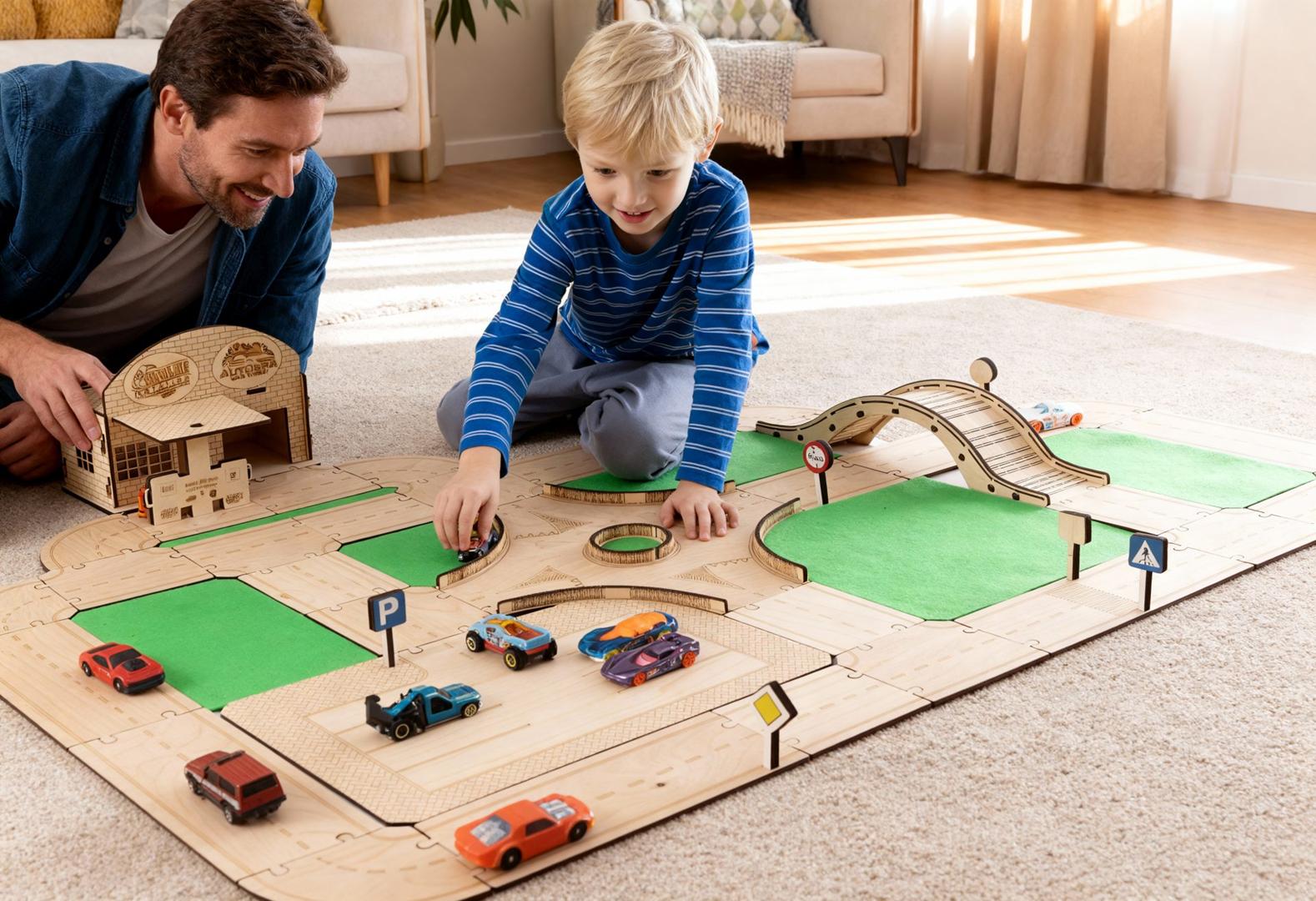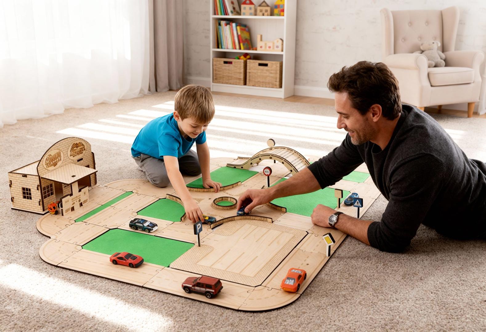 To zabawka, która rośnie razem z dzieckiem. Można ją dowolnie modyfikować i rozbudowywać, projektując układy dróg niczym prawdziwy urbanista. Dziecko nie tylko „popycha auta po torze” – ono tworzy własne historie i zasady ruchu.