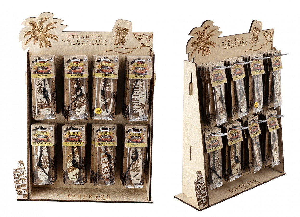 Ekspozytory personalizujemy zgodnie z wymaganiami klienta. Wykonujemy ekspozytory z indywidualną grafiką, logo oraz w kolorach, które klient osobiście wybierze. Na ekspozytorach można prezentować dowolne produkty zawieszone na hakach (tak jak na zdjęciu).