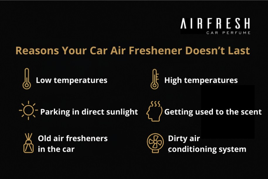 You buy your favorite car air freshener, hang it in the car, and want to enjoy the fragrance as long as possible. Sometimes, however, the scent seems to fade faster than expected. There are several reasons for this – from weather conditions to the condition of the car interior. Here are the most common factors that reduce the lifespan of a fragrance and tips on how to avoid them.