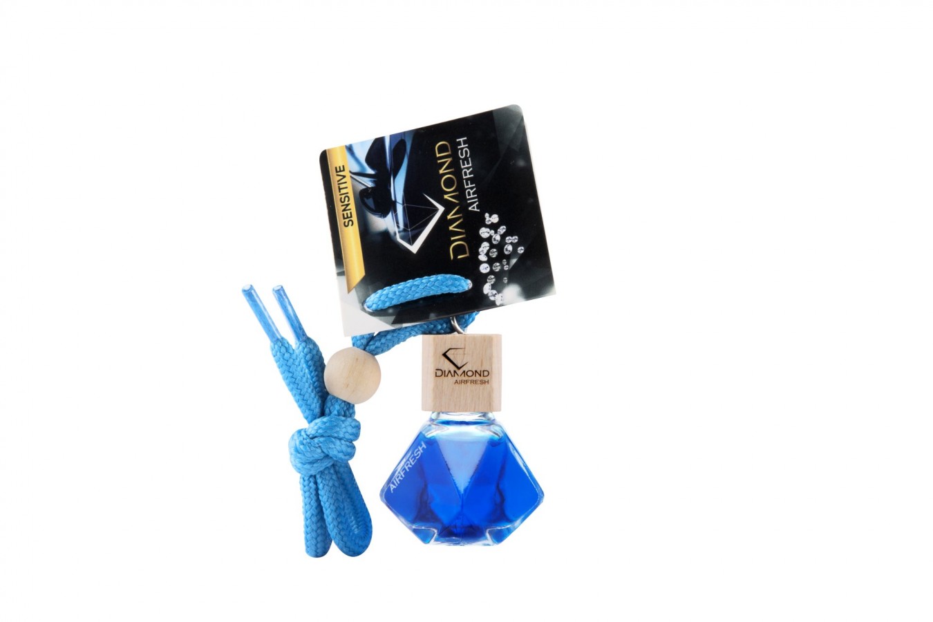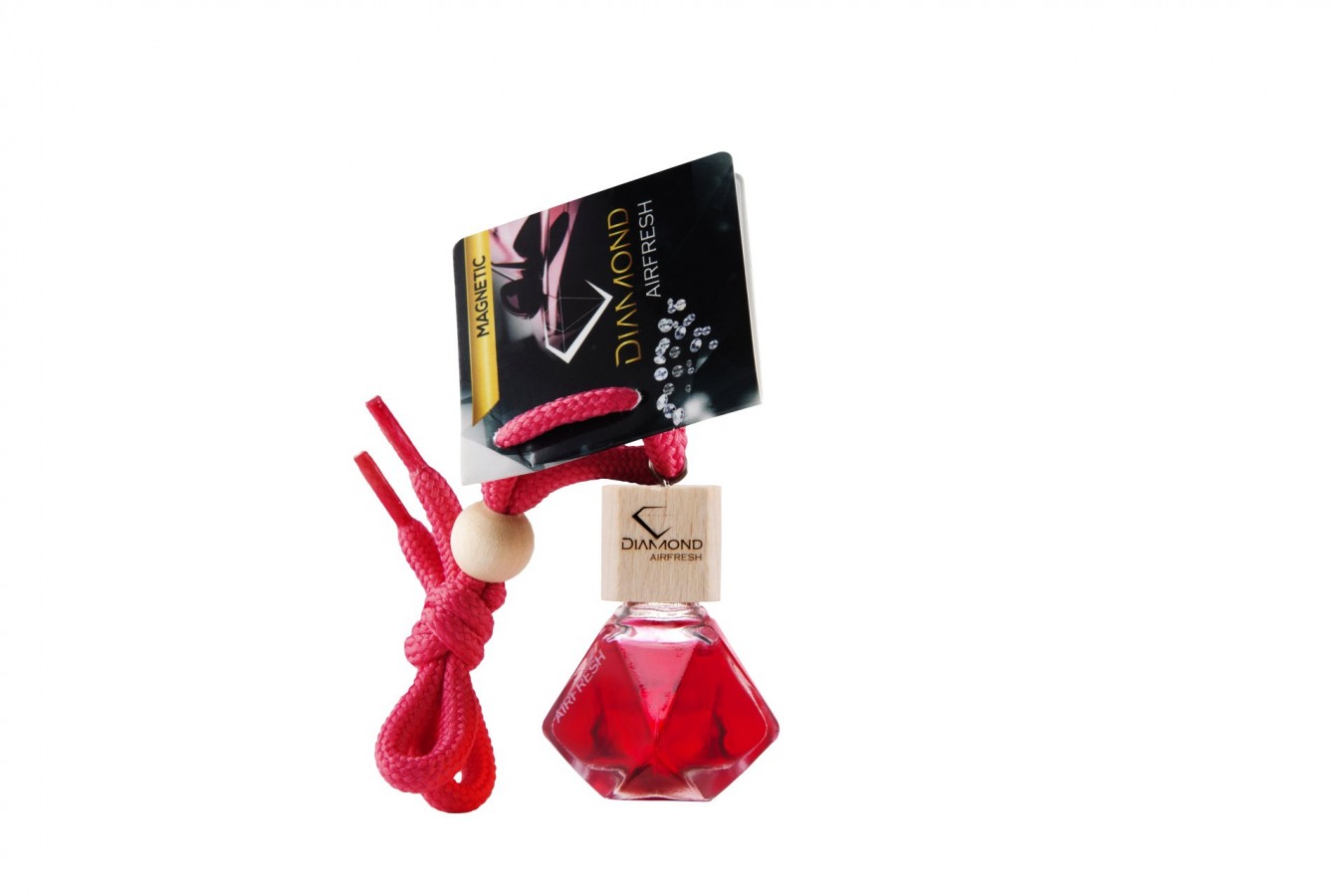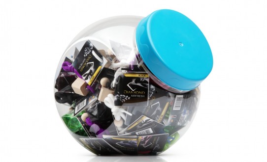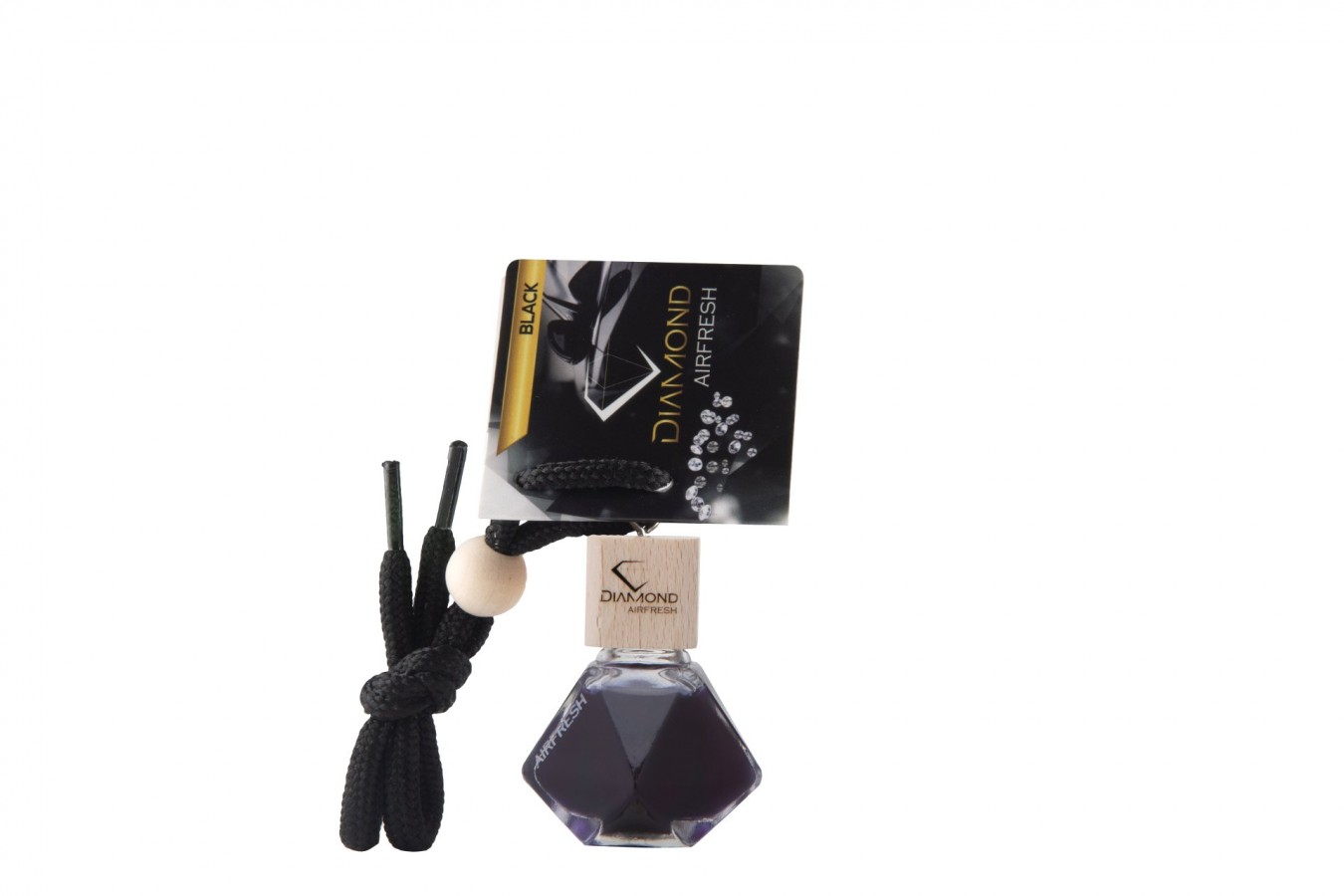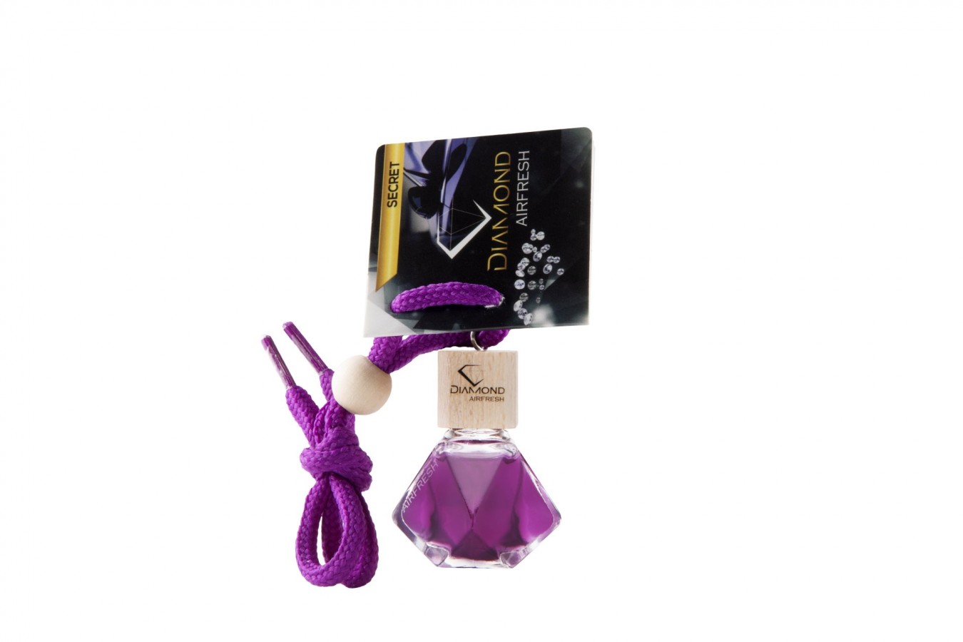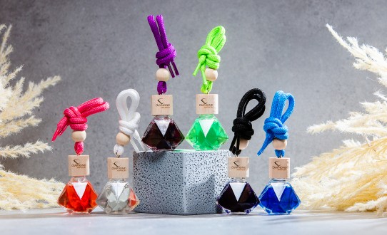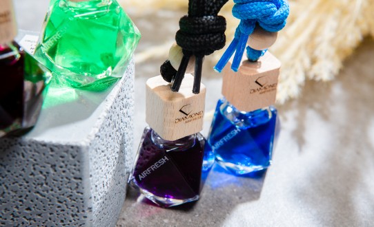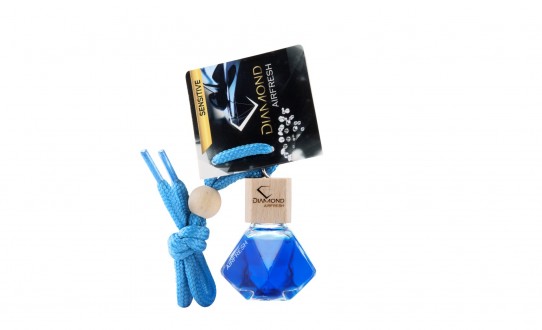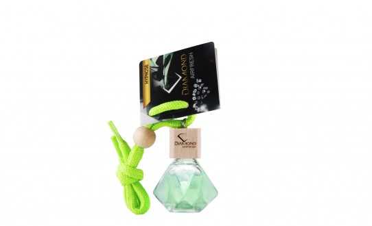 Choose your car fragrance enclosed in a glass bottle in the shape of a diamond.