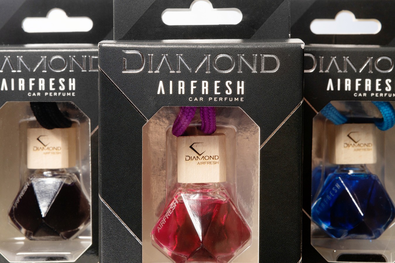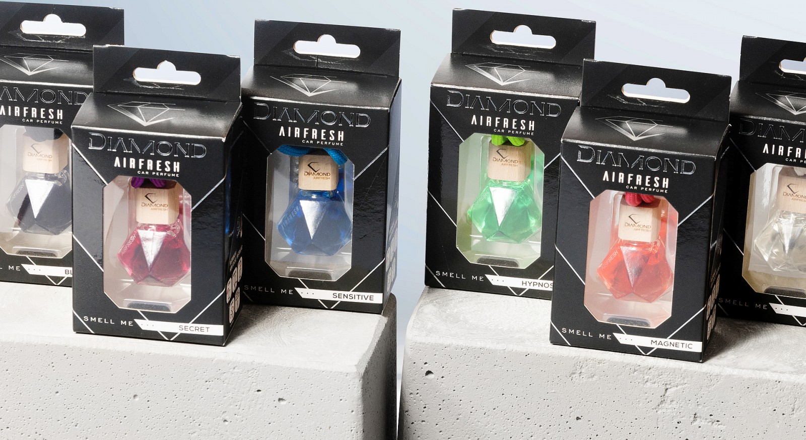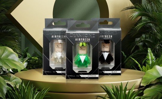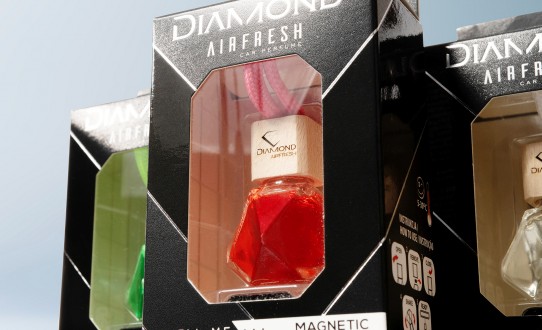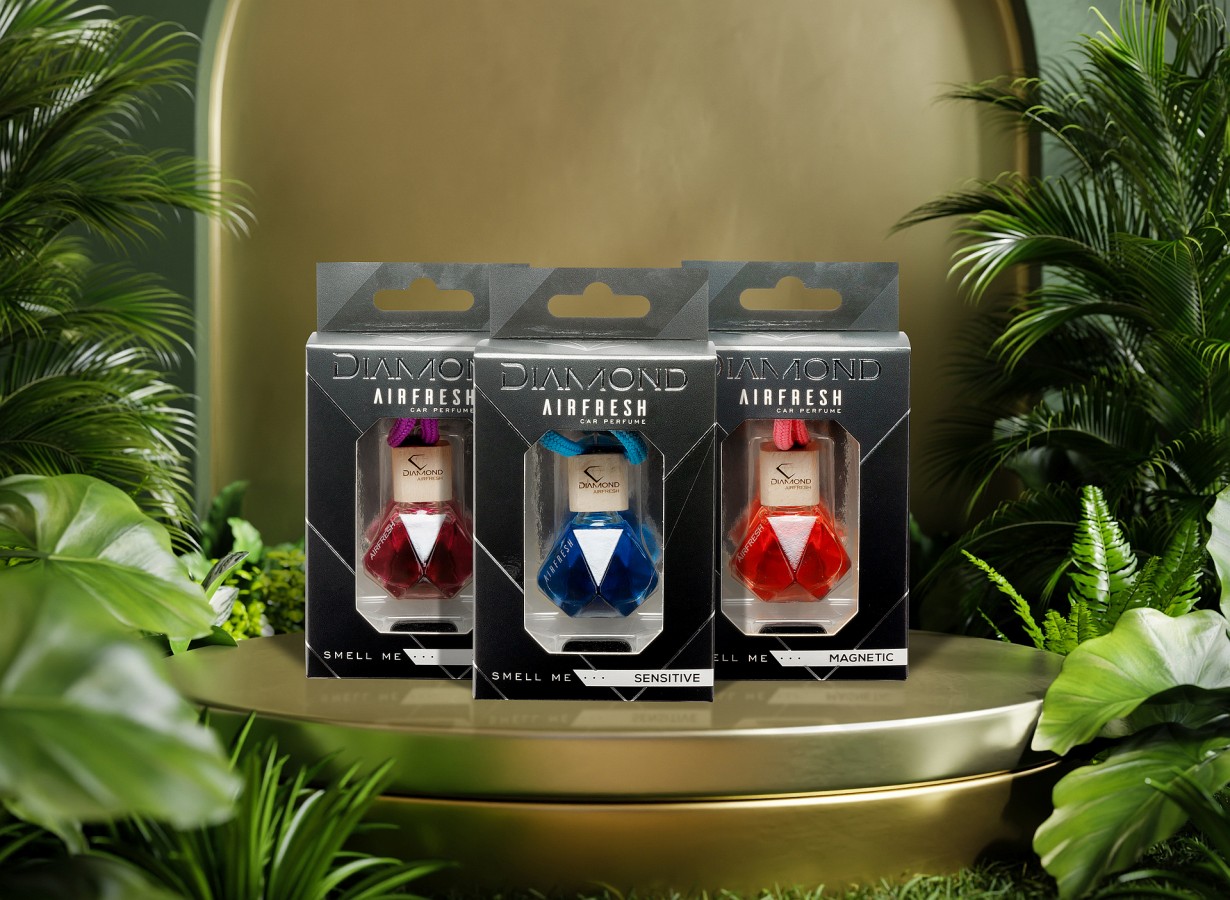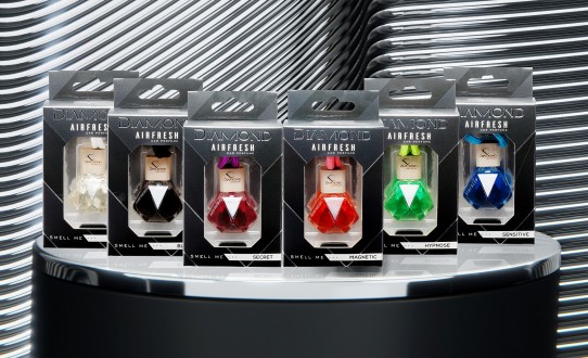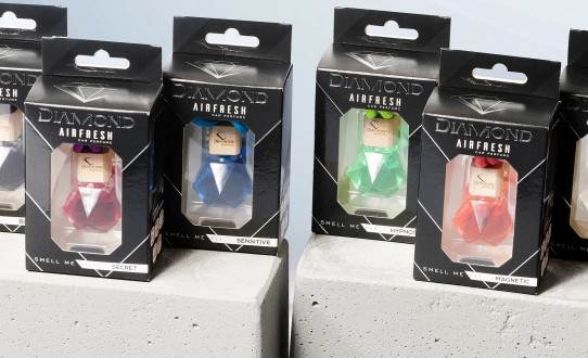 An exclusive collection of car fragrances, distinguished by their unique design. Diamond-shaped bottles, intense colours and selected fragrances create an atmosphere of luxury and elegance that lasts for many weeks.