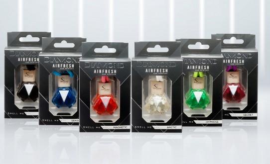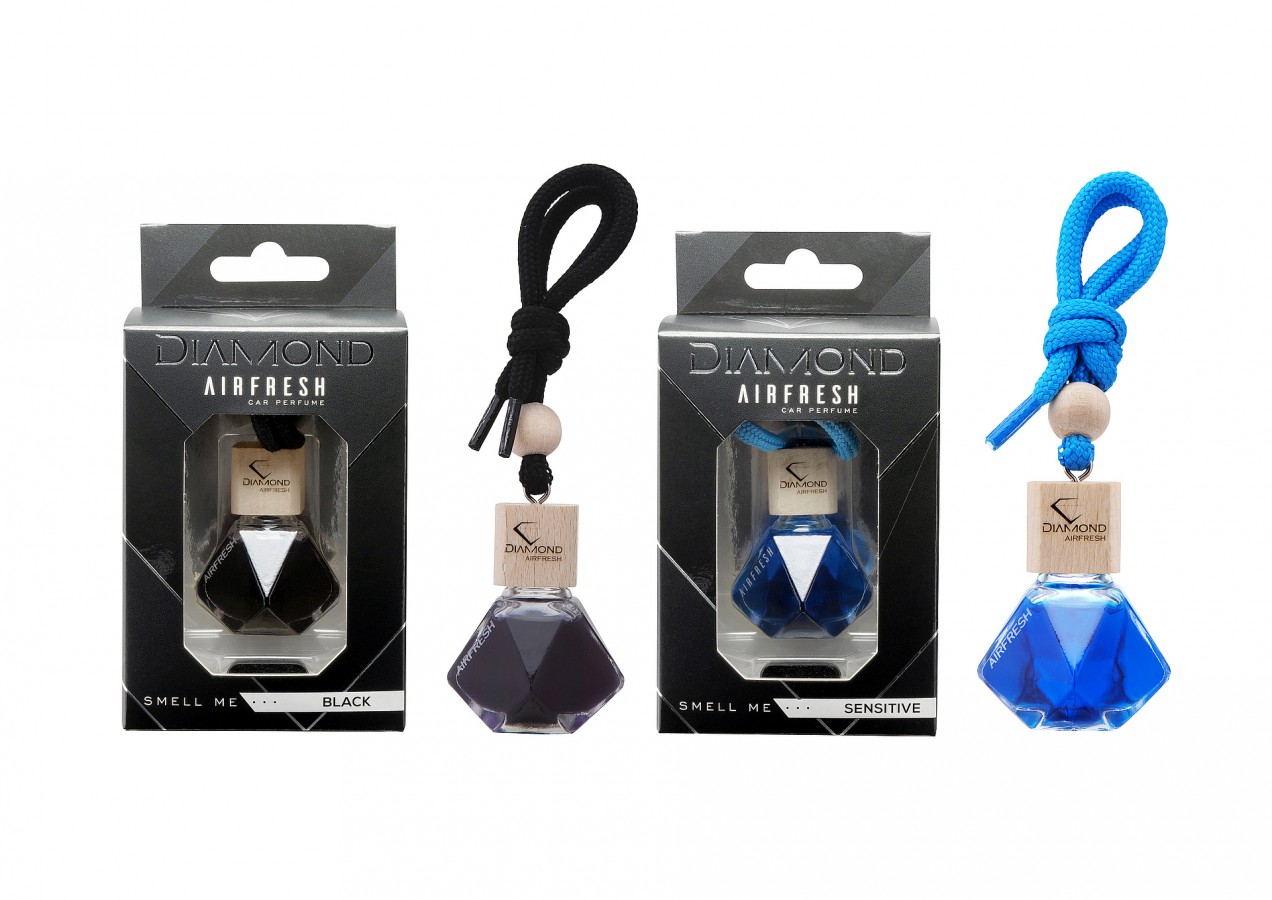 Choose your car fragrance enclosed in a glass bottle in the form of a diamond.