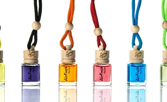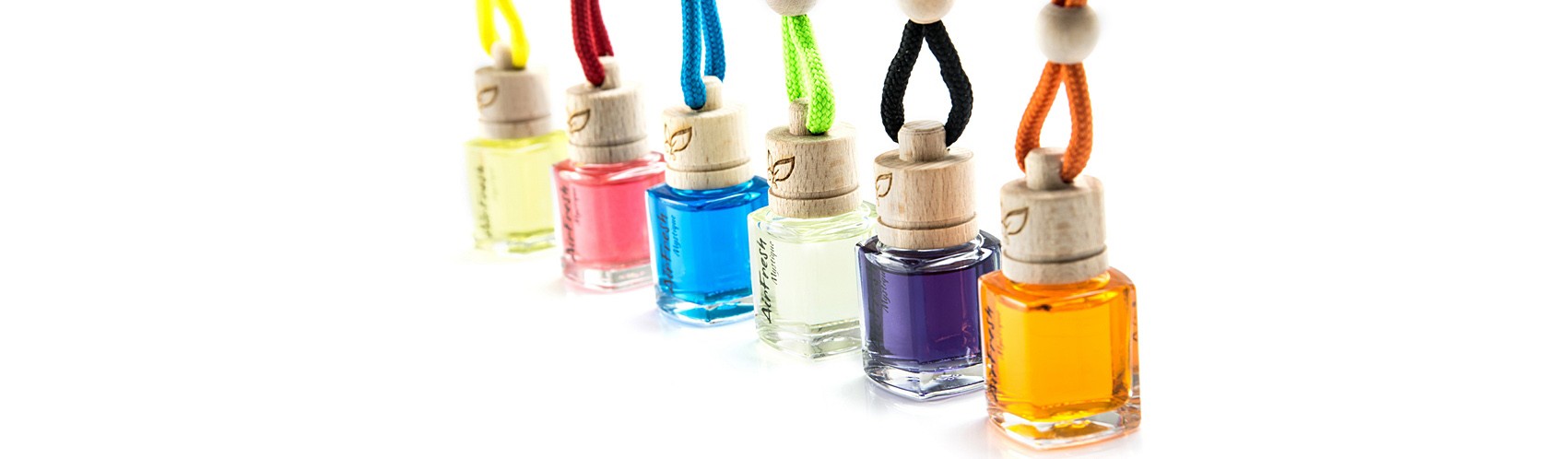 The minimalist shape of the air freshener and the fragrance composition visible through the glass of the bottle make the product a discreet, aesthetic accessory that decorates the interior of the car.