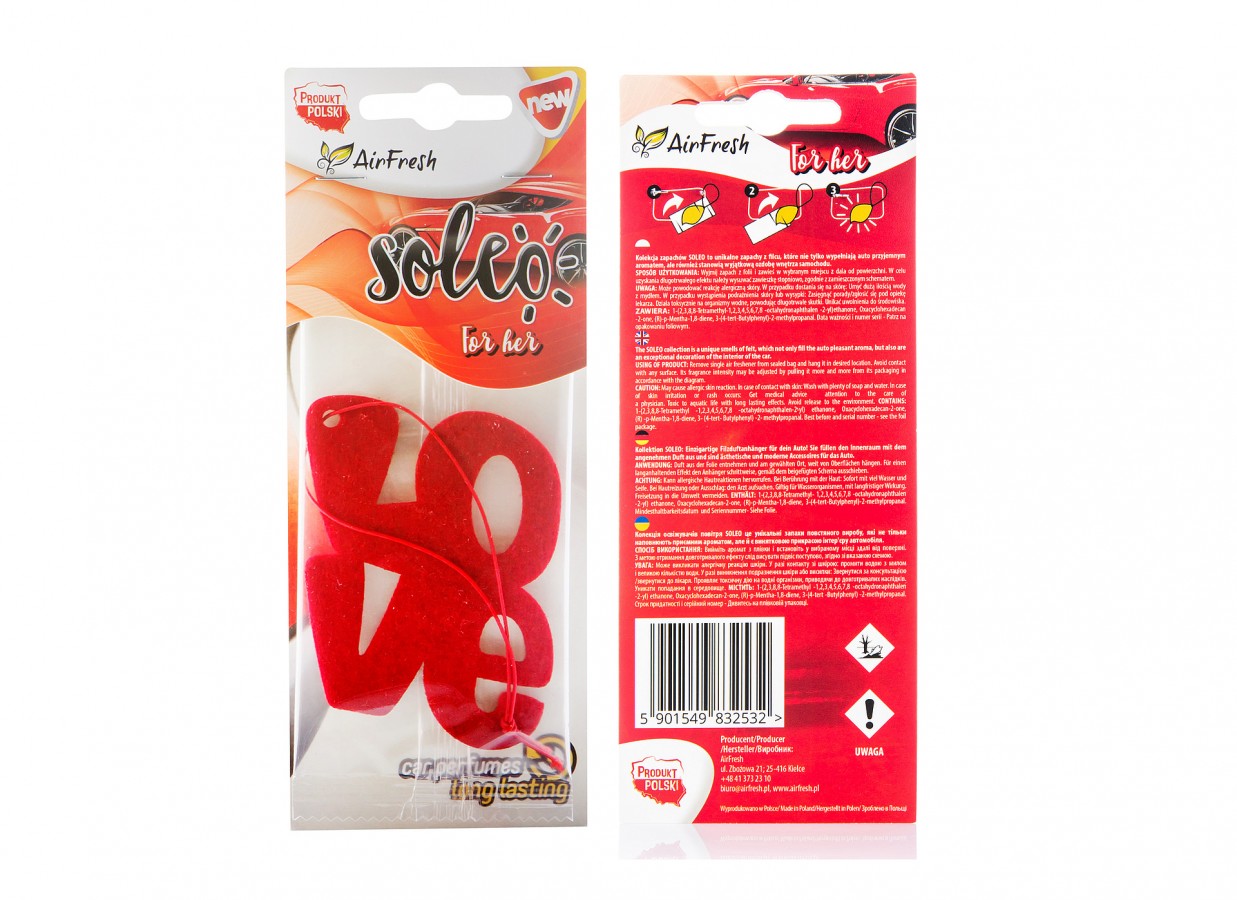 The collection of Soleo fragrances is made of unique felt fragrances that fill the car with a pleasant aroma and additionally constitute a unique decoration of the car interior.