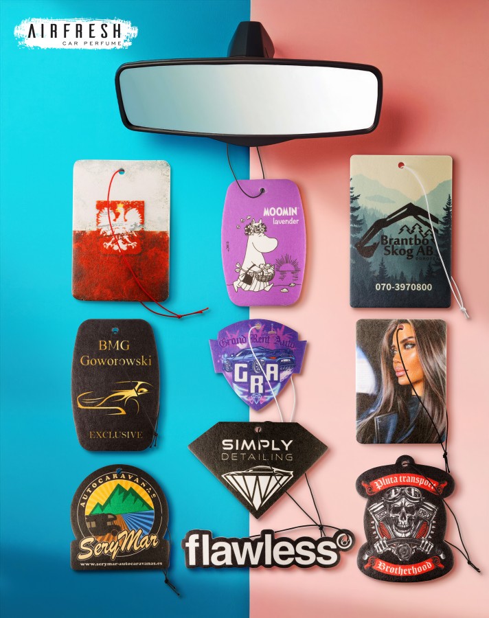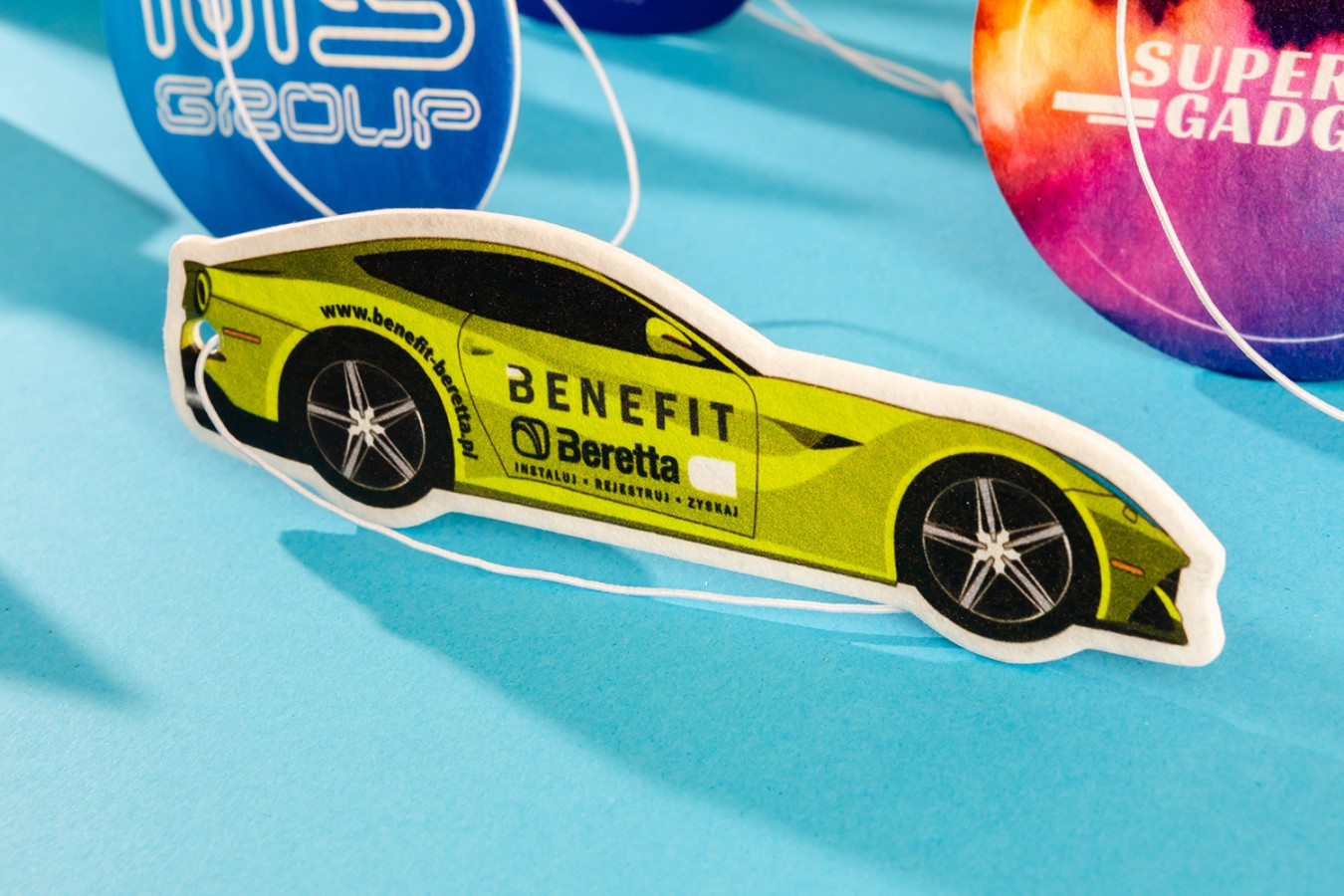 Scented car trees are one of the most popular advertising gadgets. It is an excellent and inexpensive form of promotion for every company. Car scent effectively refreshes the air inside the car - thanks to these pleasantly smelling gadgets, your company will remain in the memory of every customer for a long time. As a manufacturer of car scents, we are able to create hangers according to any pattern the customer requests.