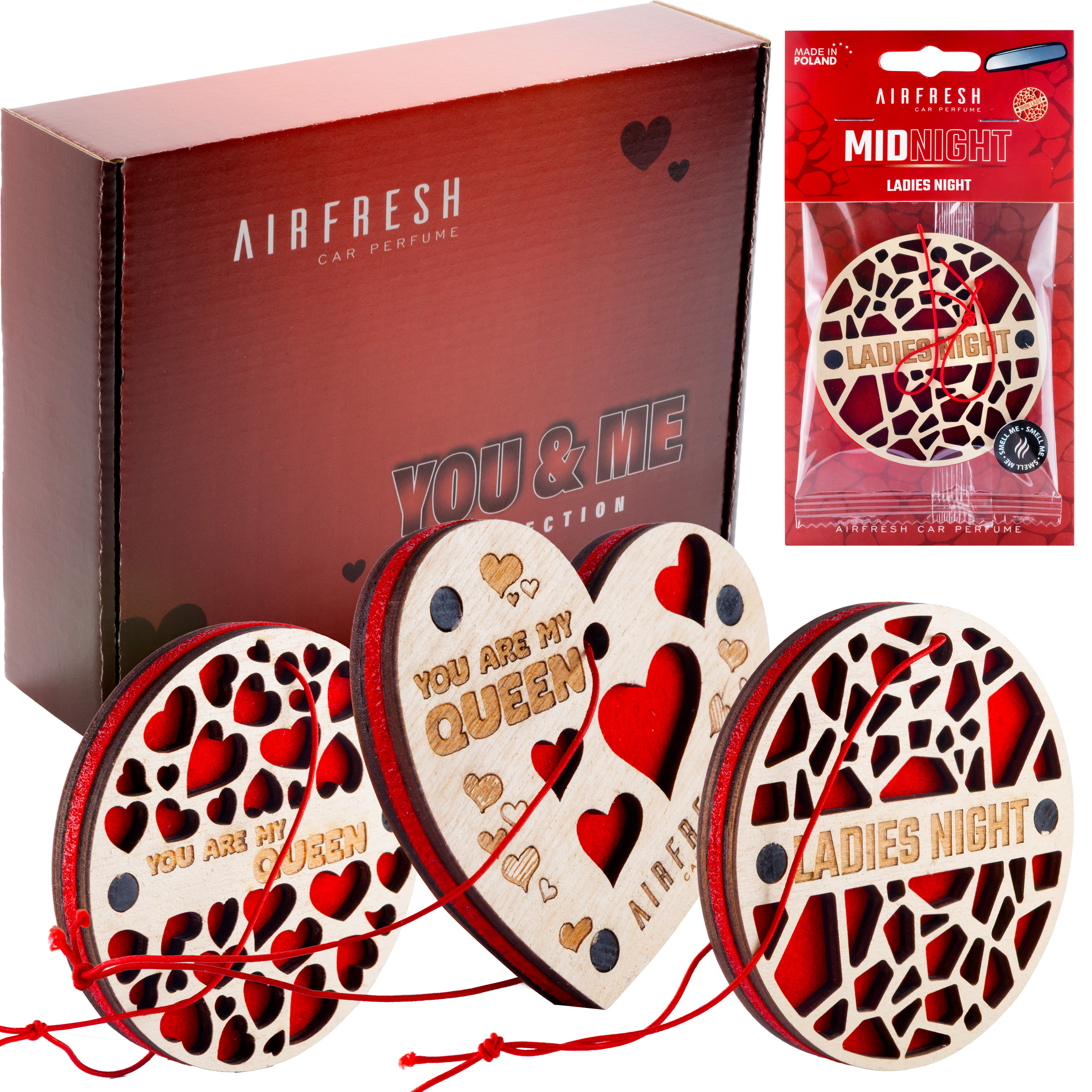 Zestaw zapachów do auta 3 szt. YOU&ME – drewno + czerwony filc | Dla niej