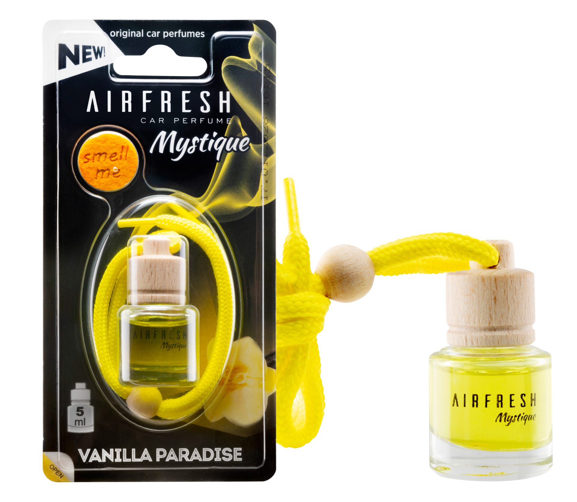 Minimalistyczny kształt odświeżacza i widoczna przez szkło buteleczki substancja zapachowa sprawiają, że produkt jest dyskretnym, estetycznym dodatkiem, który zdobi wnętrze samochodu.
