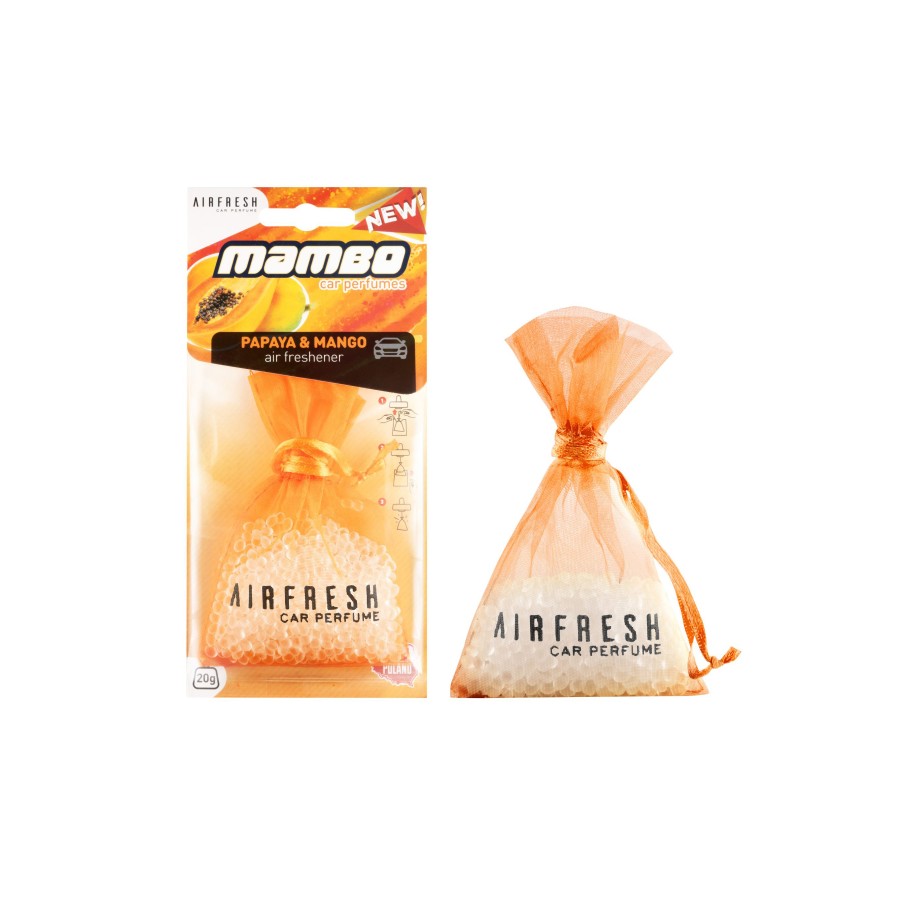 Kolekcja MAMBO to eleganckie kulki zapachowe w woreczku z organzy, które stopniowo uwalniają aromat, tworząc przyjemną atmosferę w domu, biurze czy samochodzie.