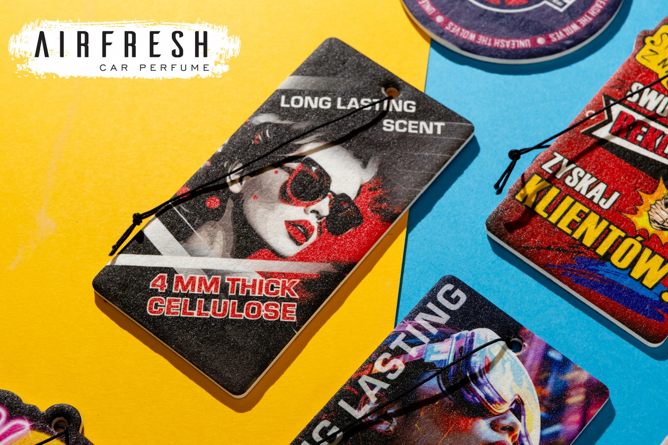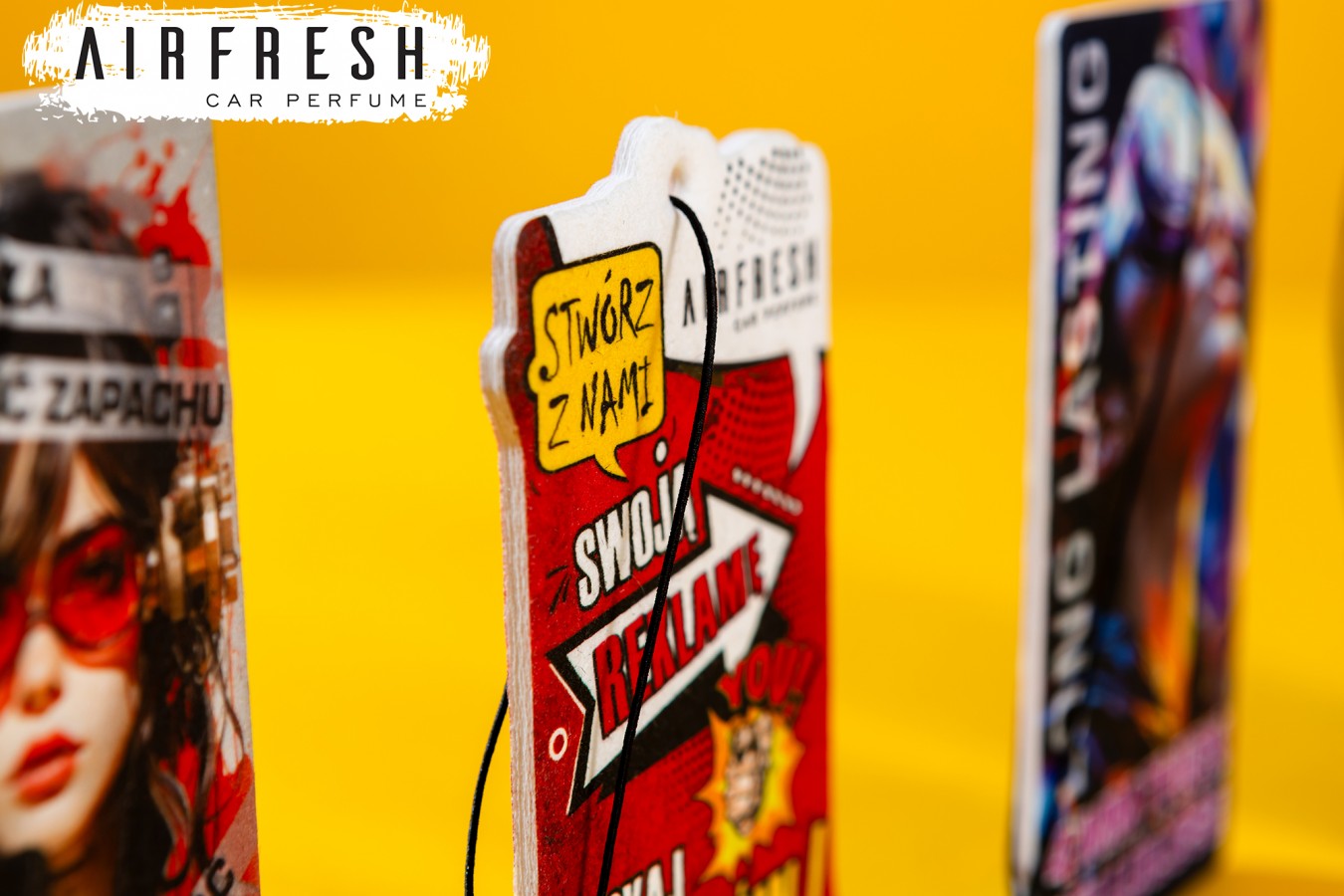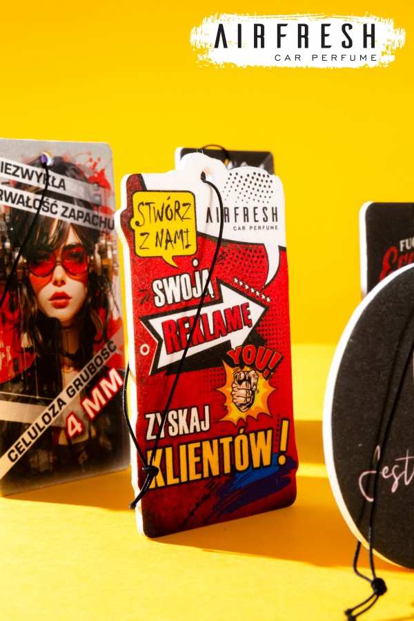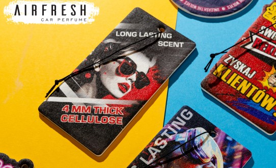 Nasze doświadczenie przy produkcji odświeżaczy powietrza do samochodu pozwoliło nam rozbudować firmę i rozwinąć wachlarz oferowanych usług o produkcję zawieszek zapachowych z grafiką klienta.