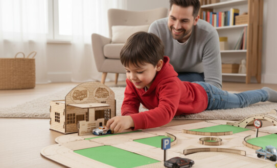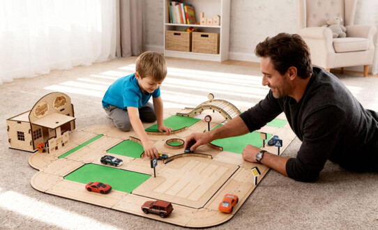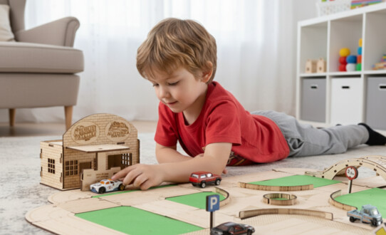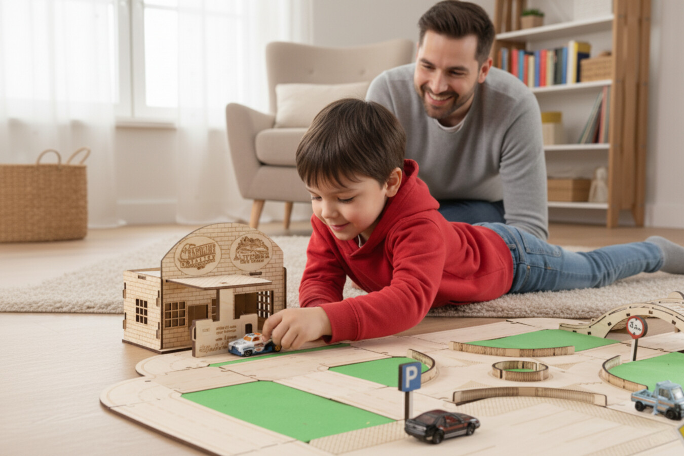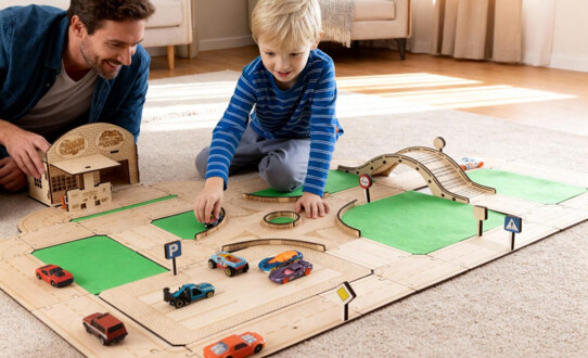 To zabawka, która rośnie razem z dzieckiem. Można ją dowolnie modyfikować i rozbudowywać, projektując układy dróg niczym prawdziwy urbanista. Dziecko nie tylko „popycha auta po torze” – ono tworzy własne historie i zasady ruchu.