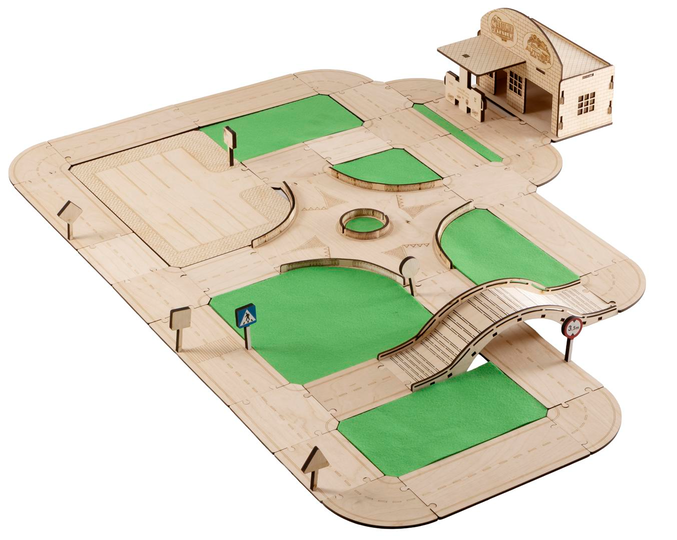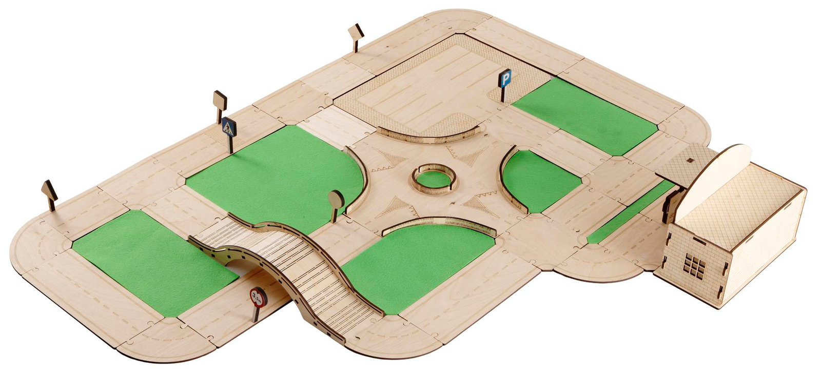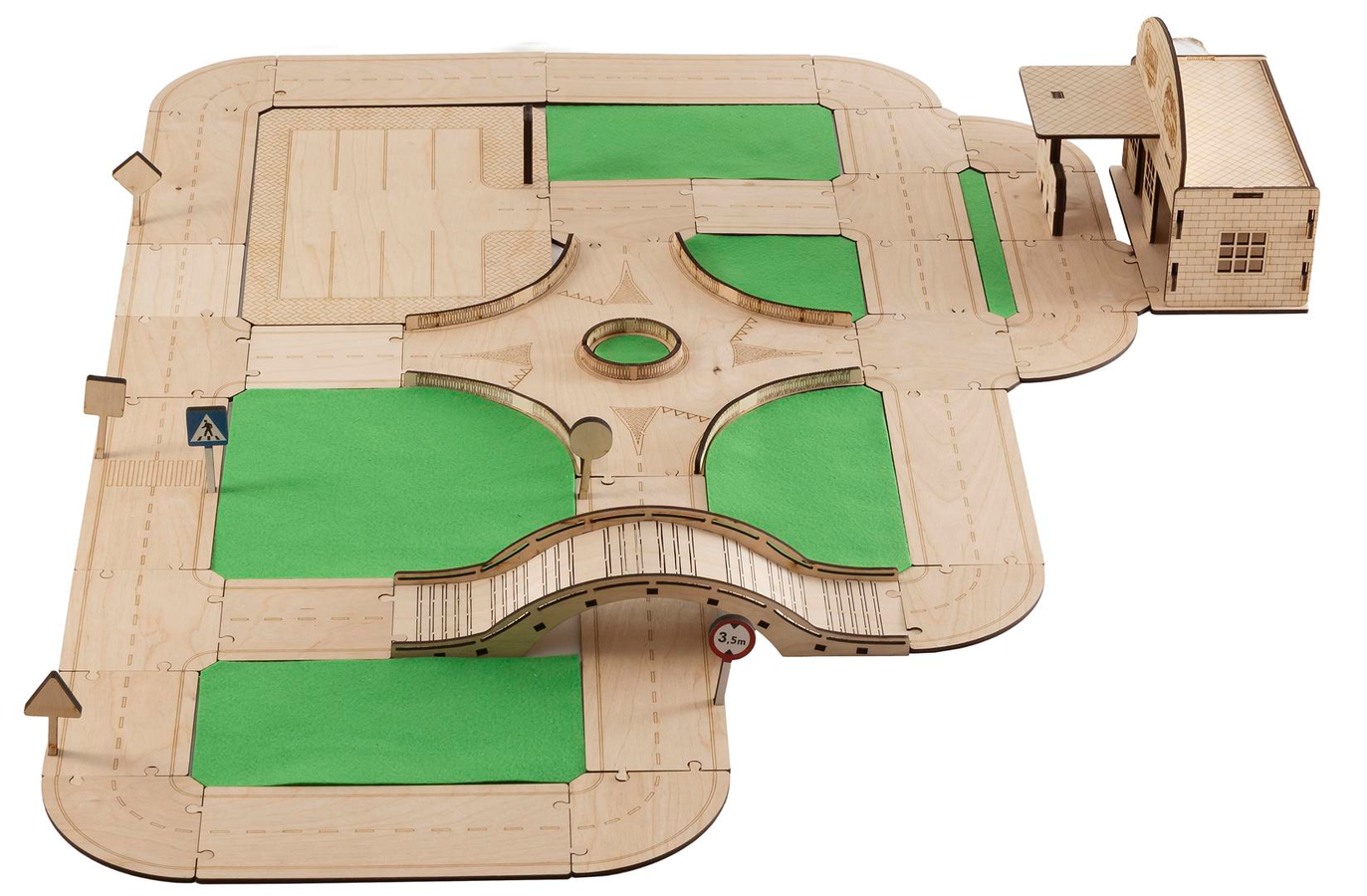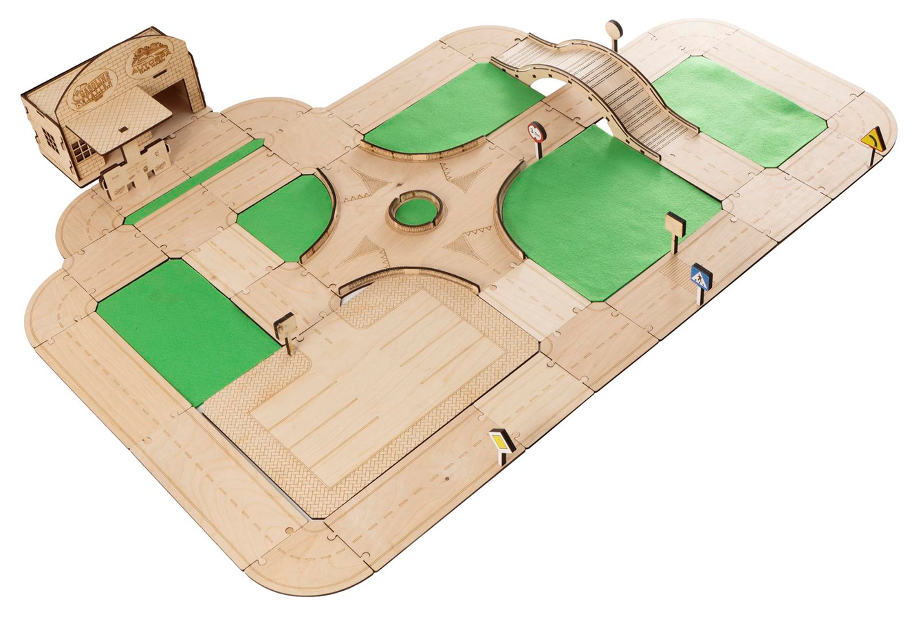 Drewniany tor modułowy – zbuduj swoje miasto! 62 elementy