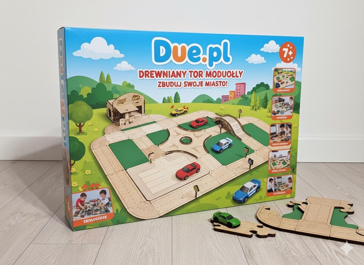 Ten zestaw to coś więcej niż zwykła zabawka. Drewniany tor modułowy pozwala dziecku stworzyć własne, małe miasto: ulice, rondo, most, parking czy garaż – każdy element można dowolnie łączyć jak puzzle. To idealna zabawa rozwijająca kreatywność, logiczne myślenie i sprawność dłoni.