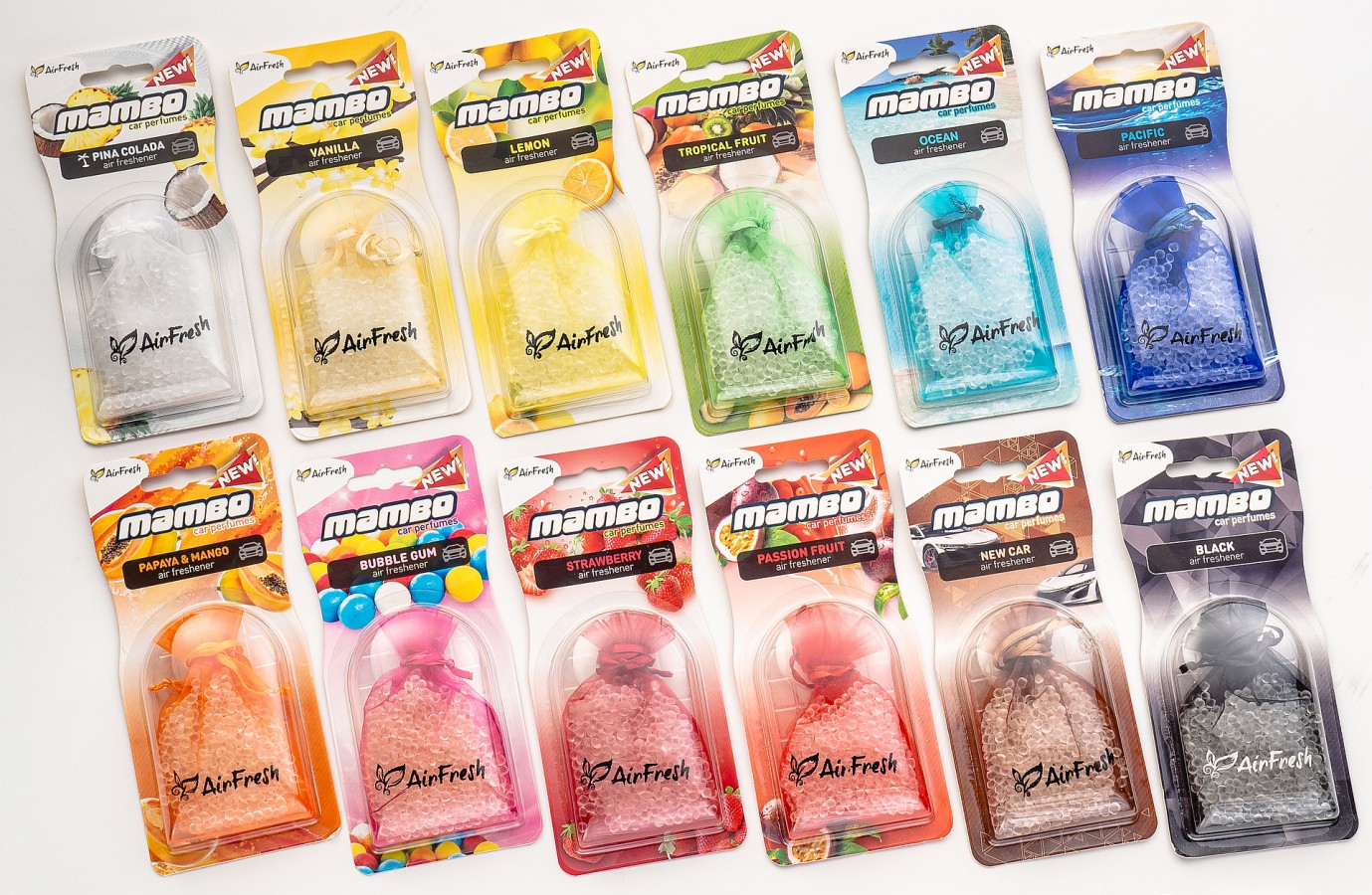 MAMBO Collection - это ароматы в нежном мешочке из органзы, в котором находятся ароматические шарики, пропитанные свежей парфюмерной композицией. Шарики постепенно выделяют свой аромат.