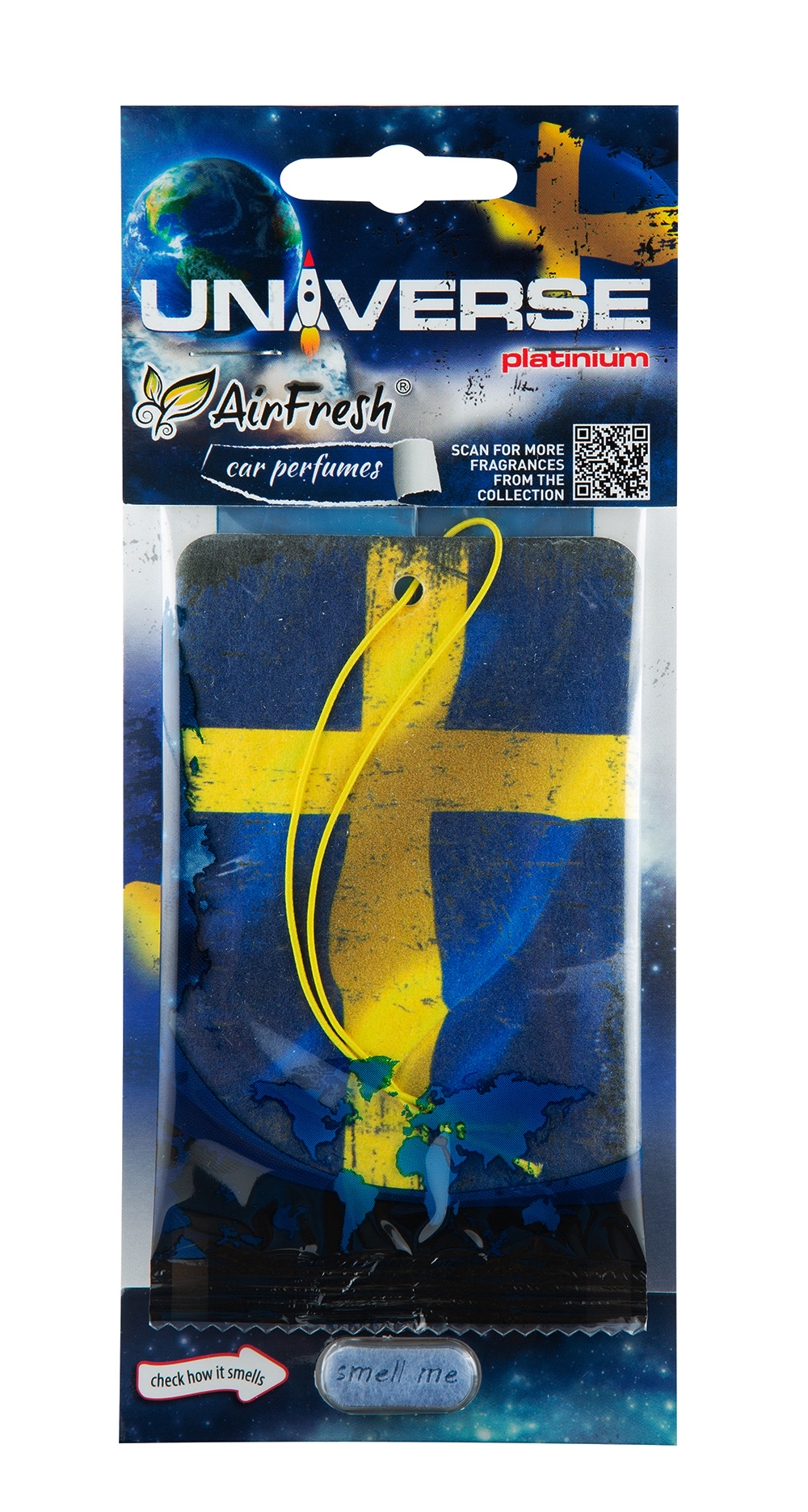 UNIVERSE Platinium – zapach premium z flagą Szwecji. Idealny wybór dla miłośników samochodów marek Volvo i Saab. Nuty róży, frezji i pomarańczy z bazą paczuli, wanilii i ambry.