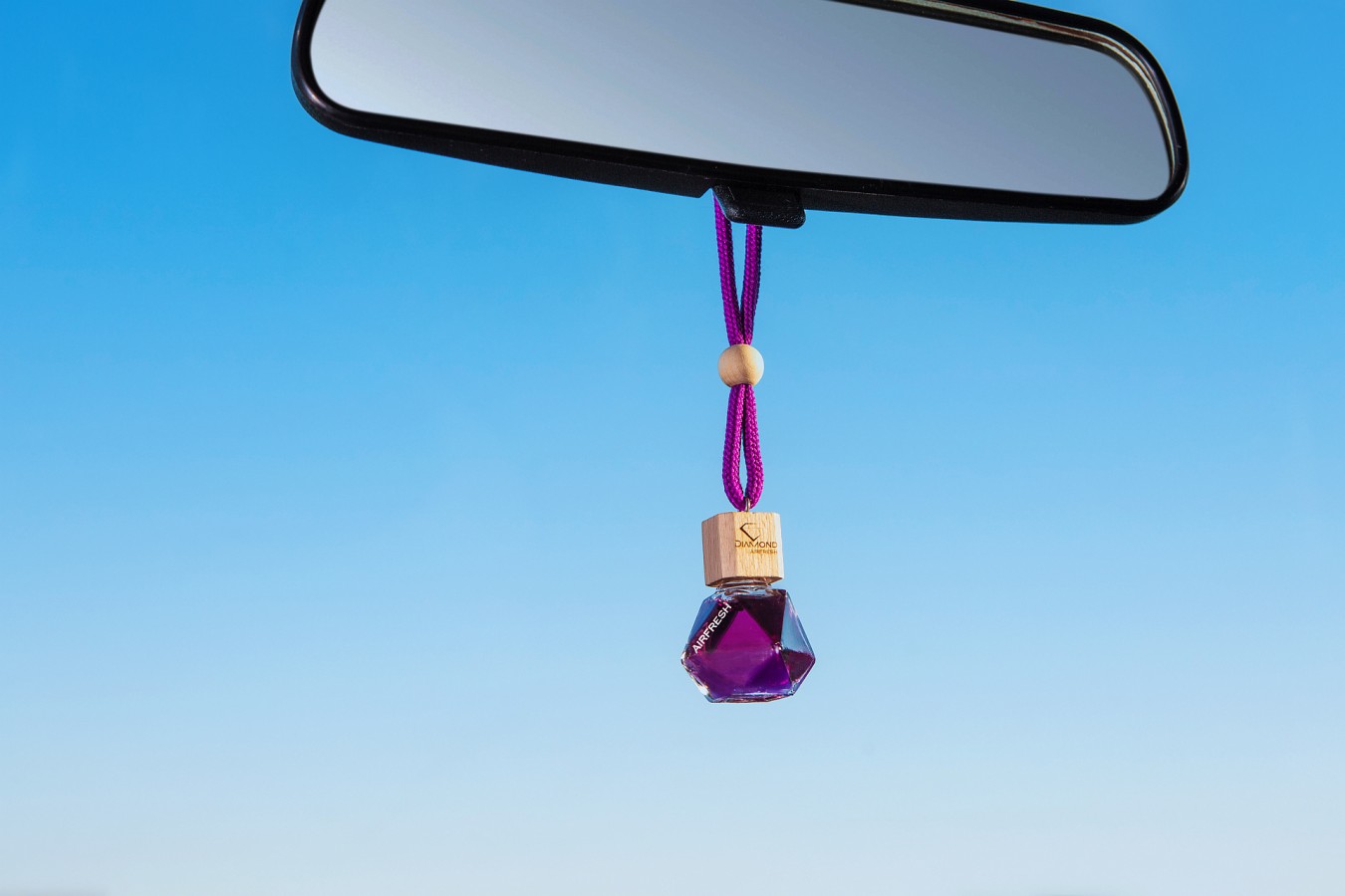 Minimalistyczny kształt odświeżacza i widoczna przez szkło buteleczki kompozycja zapachowa sprawiają, że produkt jest dyskretnym, estetycznym dodatkiem, który zdobi wnętrze samochodu.