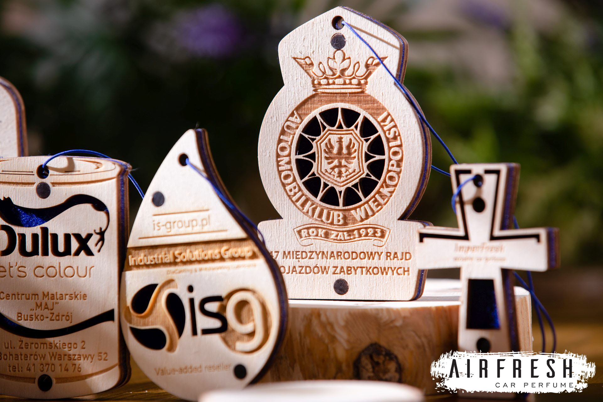 Zawieszki zapachowe drewno + filc z logo – 500 szt