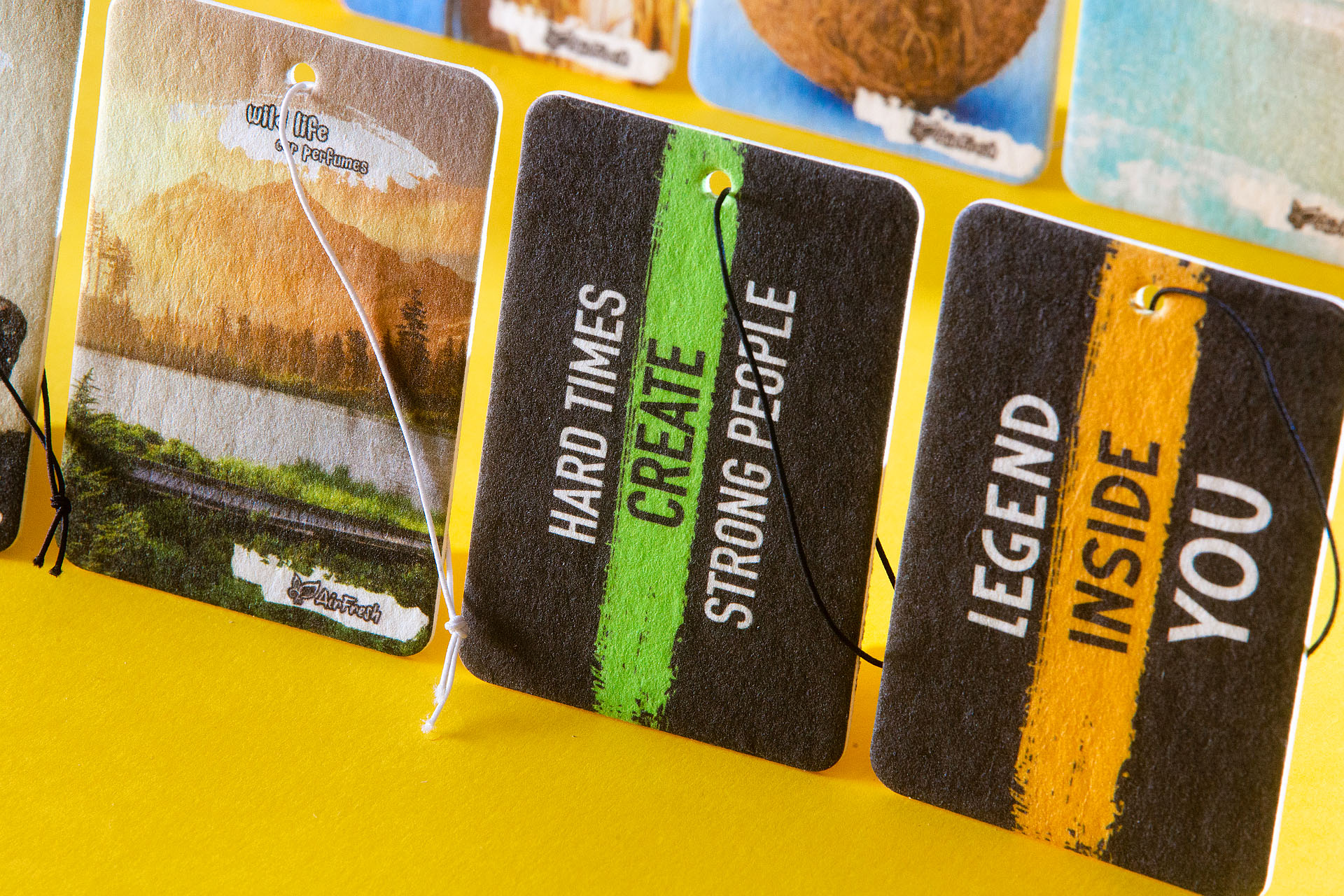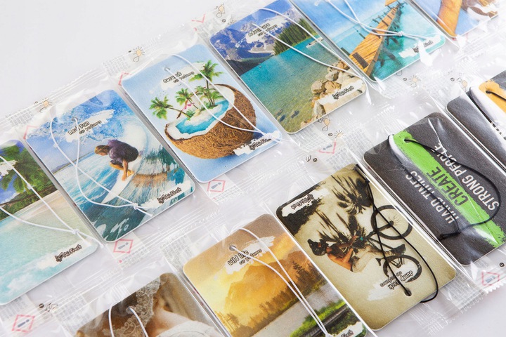 Grafika na zawieszkach jest dokładnie taka sama, jak na widocznych zdjęciach. Zapachy pakowane są w folię barierową z nadrukiem ostrzegawczym.