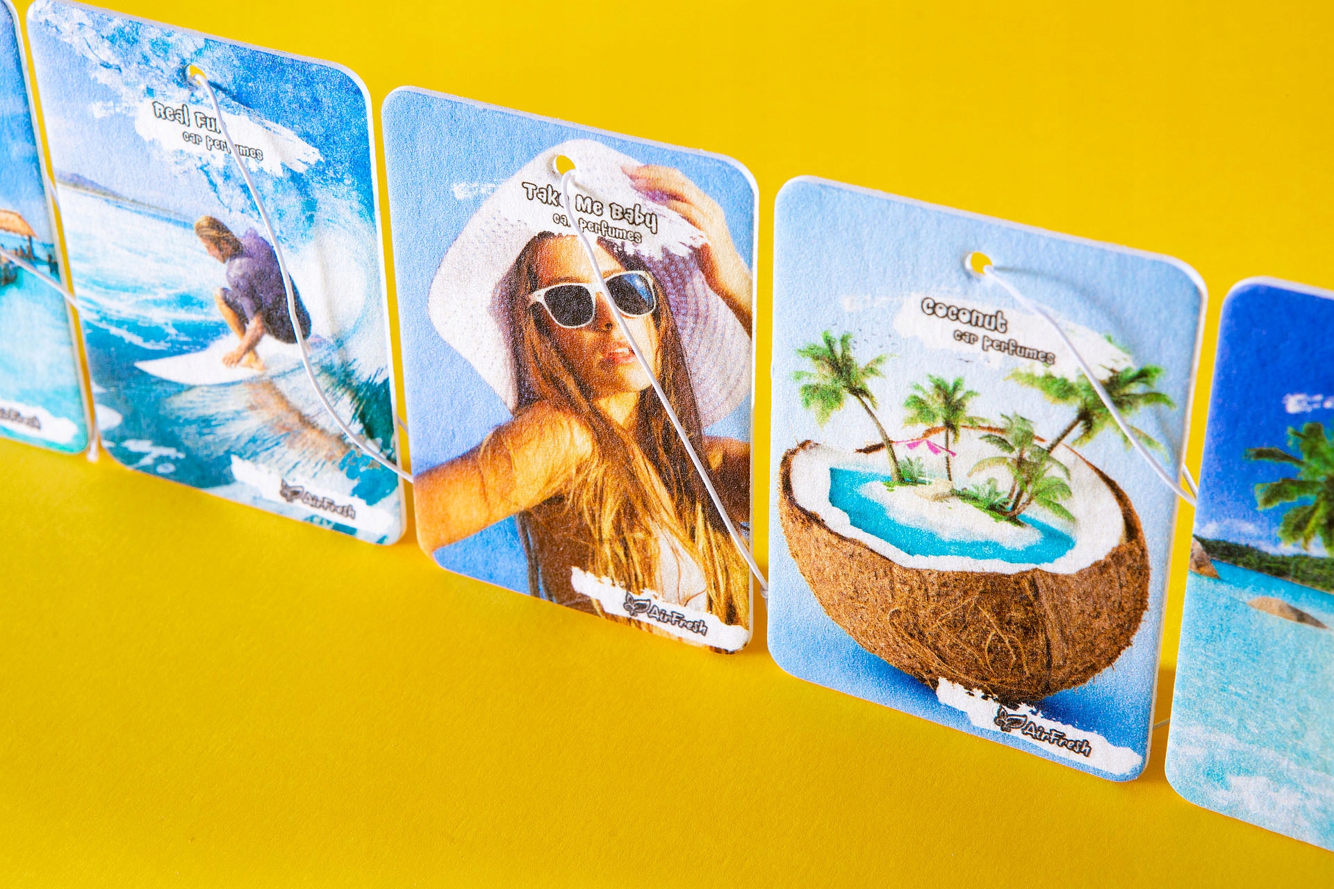 Coconut: zapach tropikalny w którym zapach kokosowy pojawia się w połączeniu z owocem granatu i jeżyną. Zapach kultowy jak dla samochodowej zawieszki zapachowej. Nie może zabraknąć tego zapachu w prawdziwej taksówce!