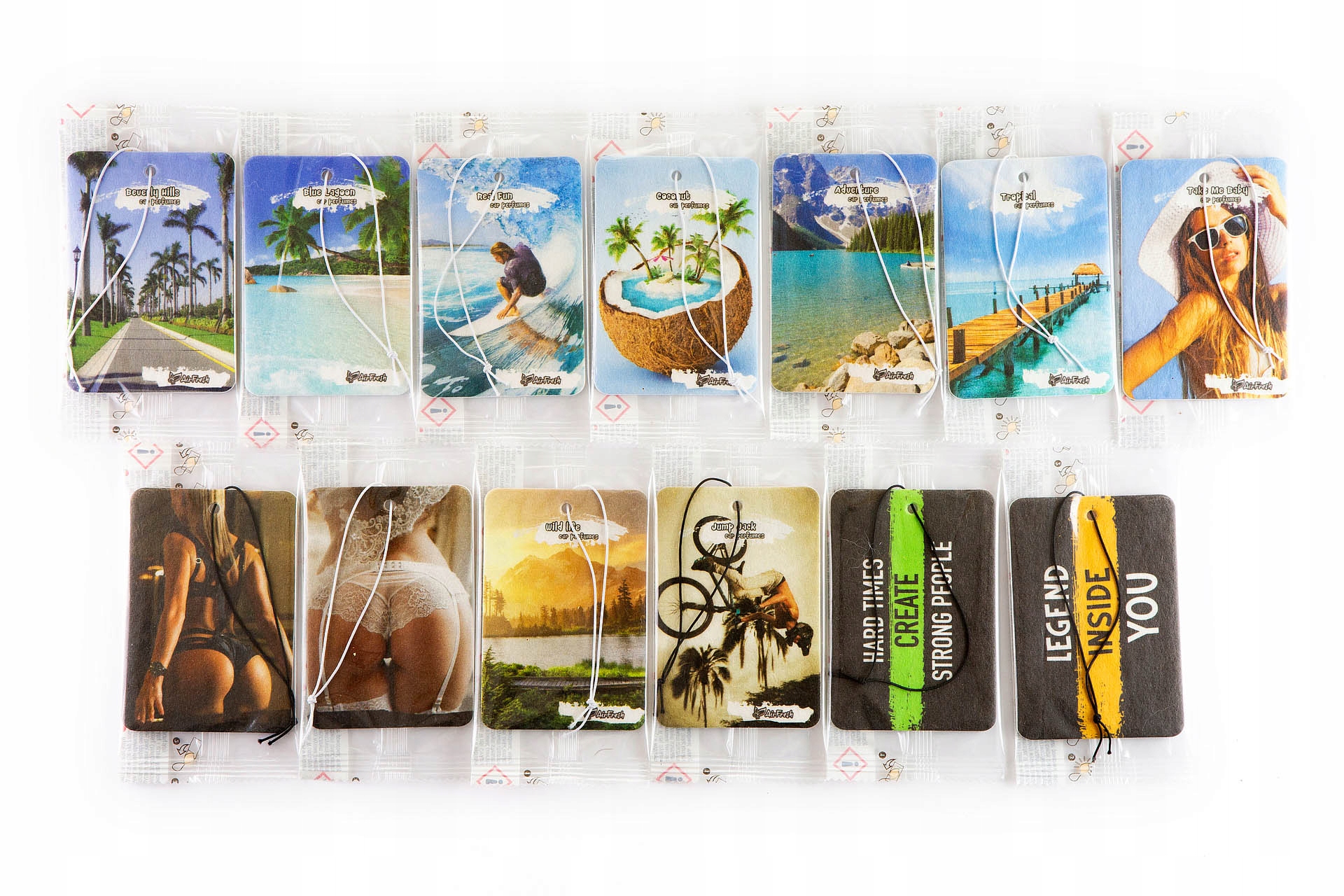 Kupując 1 szt. otrzymasz 13 różnych zawieszek zapachowych- każda o innym, wyjątkowym zapachu.